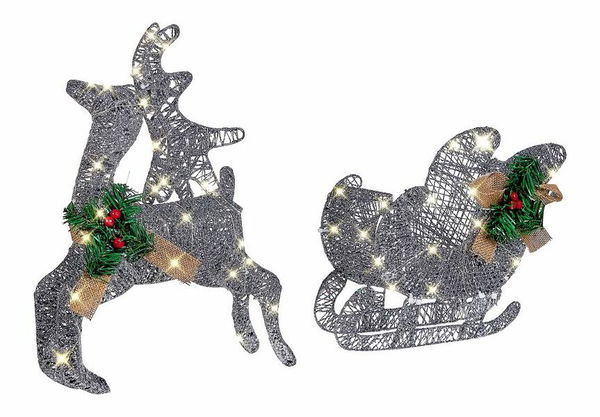 Venkovní dekorace sáně a sob Ethan (stříbrná) (s osvětlením)