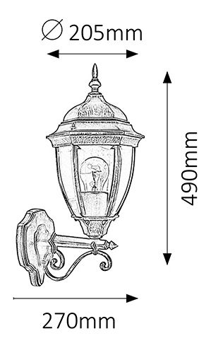 Venkovní svítidlo Toronto 8382 (antická zlatá) je dokonalým doplňkem pro váš venkovní prostor. Jeho antická zlatá barva dodá vašemu domu klasický a elegantní vzhled, který se dokonale hodí ke každé architektuře. Tento svícen má úžasnou odolnost vůči povětrnostním podmínkám a díky krytu IP44 je chráněn před prachem a vodou. Uvnitř svítidla se nachází místo pro jedno žárovkové závitové patice E27 o maximálním výkonu 60 W. Svítilna má rozměry 36 x 19 x 21 cm a snadno se instaluje. Venkovní svítidlo Toronto 8382 vám poskytne dostatek světla pro osvětlení vašeho vchodu nebo terasy a zároveň bude krásnou dekorací vašeho domu.