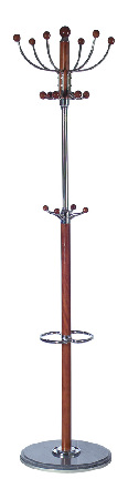 Věšák CR-29, kde si budete moci pověsit svoje kabáty nebo bundy díky vrchní části, kde se nachází spousta držáků. Ve spodní části věšáku je držák, který pojme 2 deštníky. Tento věšák je v provedení mahagonu s chromovými prvky.