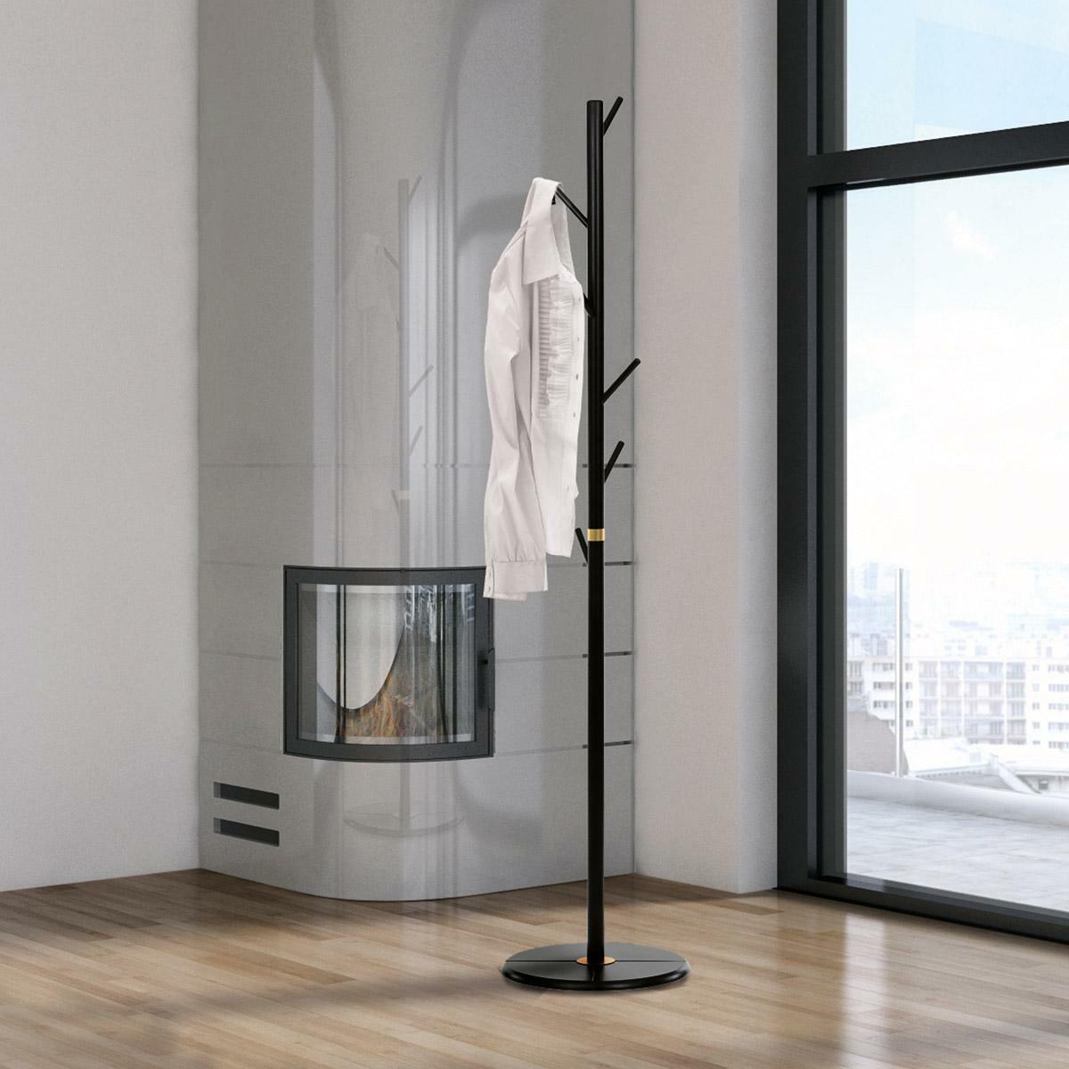 Tento elegantní černý věšák přináší moderní styl do vaší předsíně. Vyroben z masivního materiálu, nabízí robustní a stabilní konstrukci pro zavěšení kabátů, klobouků a dalších doplňků. Zlaté detaily dodávají luxusní vzhled, který vynikne v každém interiéru.