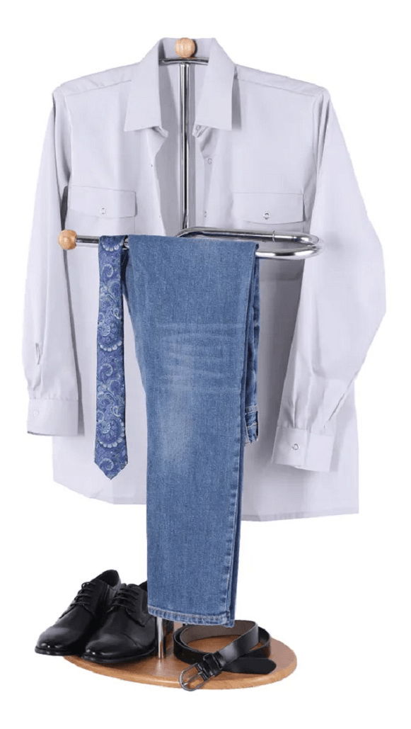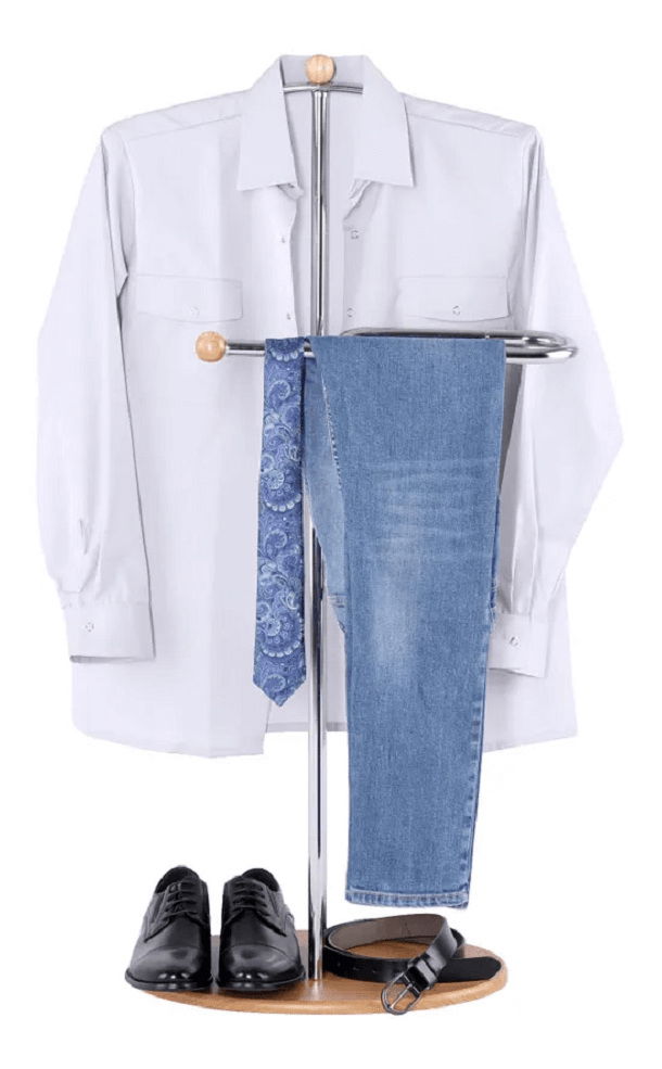 Němý sluha jako věšák? I to je možné! Z naší nabídky vám dáváme do pozornosti elegantního pomocníka s přízvučným jménem Elon. Vyroben je z kvalitního kovu/chromu a z fóliované MDF. V barevném provedení buk v kombinaci se stříbrnou barvou úžasně zapadne do každého pokoje, své místo si najde také v předsíni. Už si víc nemusíte lámat hlavu, kam s vyžehlenou košilí či s kravatou, němý sluha se pro vás stane tím správným řešením.
