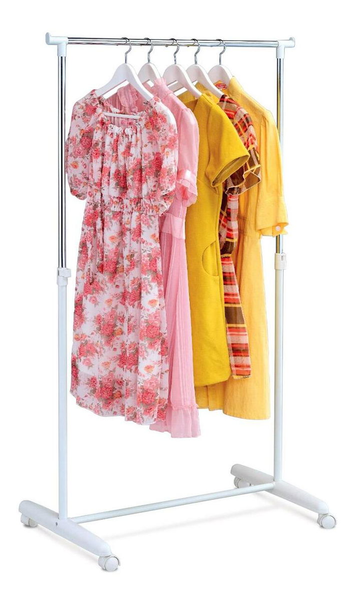 Stojan na šaty jednoramenný s pojezdem bez aretace v provedení chrom/bílá barva kovu a plastu. Doporučená nosnost je 5 kg rovnoměrně rozložené zátěže na jedno rameno. Stojan je určen do domácností a není určen pro zátěžový provoz. Výškově nastavitelný. Dodáváno v demontovaném stavu.