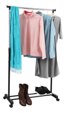 Pojízdný věšák, který je vhodný do ložnice, nebo na odkládání sezónních oděvů. Vyroben je z nerezového kovu v kombinaci s vysoce-pevným černým plastem.
