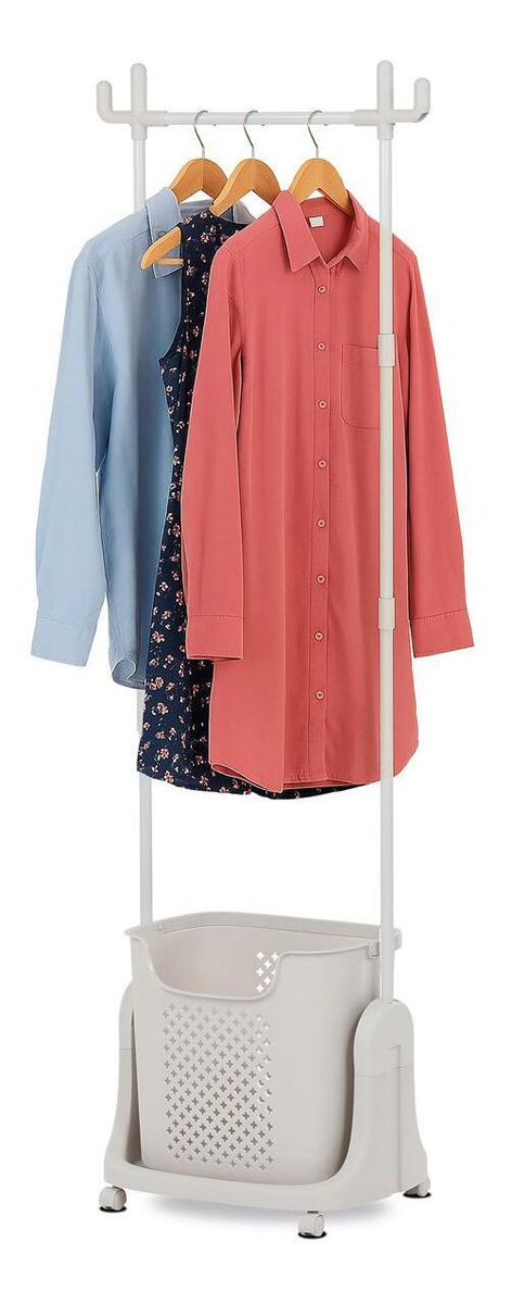 Praktický věšák na šaty s košem na prádlo je dokonalým spojením funkčnosti a elegance. Bílá konstrukce z kvalitního plastu je lehká, stabilní a snadno udržovatelná. Horní část nabízí dostatek prostoru pro zavěšení oblečení, zatímco spodní integrovaný prádelní koš slouží jako praktický úložný prostor. Díky kolečkům je věšák snadno přemístitelný a hodí se do předsíně, ložnice nebo koupelny. Minimalistický design v bílém provedení zapadne do každého interiéru a usnadní organizaci vašeho domova.