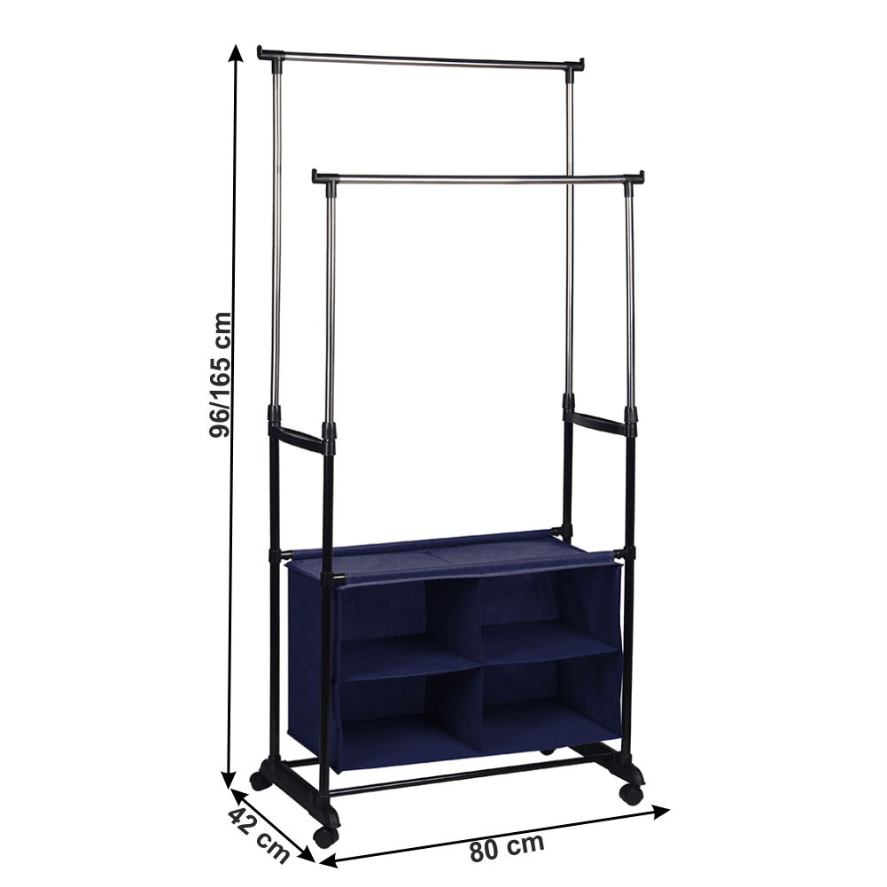Tento věšák na kolečkách Sogrun je ideálním řešením pro ty, kteří potřebují přepravovat oblečení z místa na místo. Díky svým kolům a jednoduchému designu může být snadno přesouván po celém domě nebo kanceláři. Věšák má nastavitelnou výšku od 96 do 165 cm a hloubku 42 cm, což umožňuje zavěsit různé druhy oblečení. Tento věšák je také užitečný pro ty, kteří mají omezený prostor ve skříni nebo potřebují snadno přístupné oblečení. Je k dispozici v elegantní černo-stříbrné barvě, což jej činí krásným a praktickým doplňkem do jakéhokoli interiéru. S tímto věšákem na kolečkách Sogrun budete mít oblečení vždy na dosah ruky.