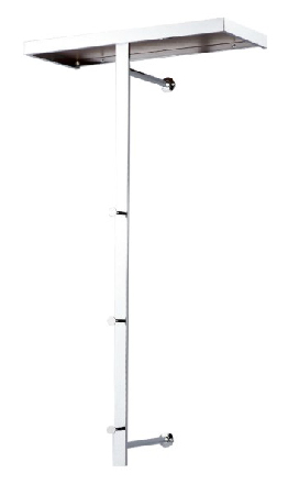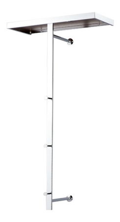 Praktický věšák na stěnu. Konstrukce je chromová a horní odkládací polička z lakované MDF v barvě dřeva ořech.
