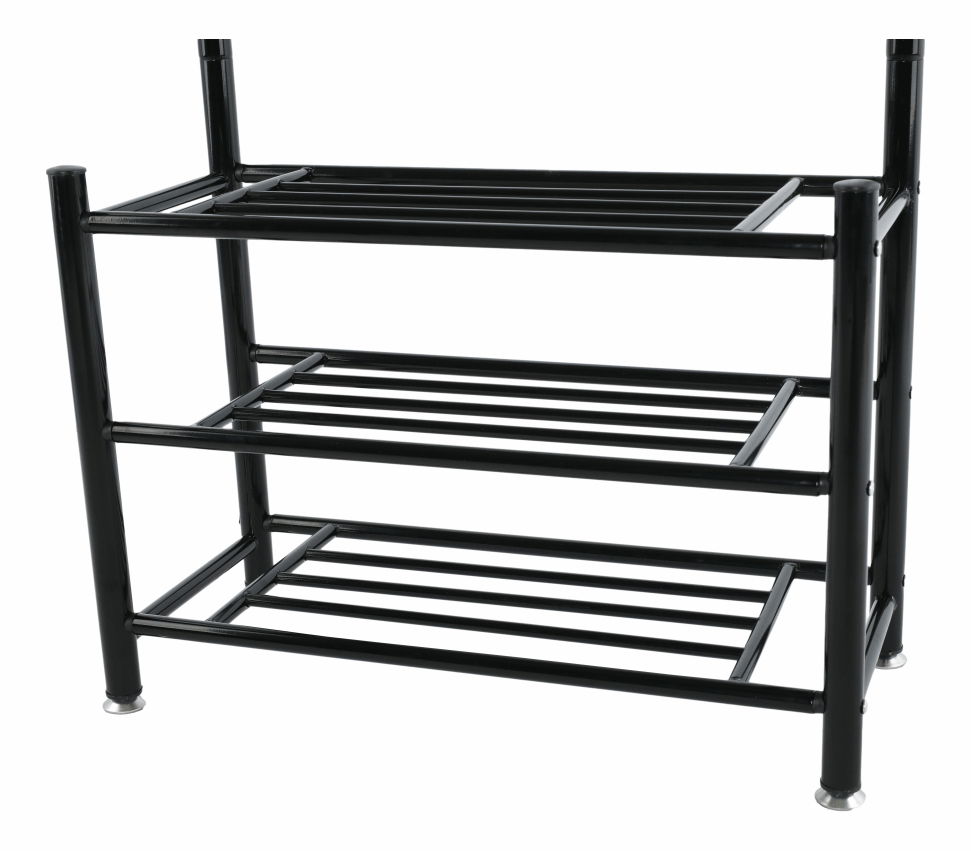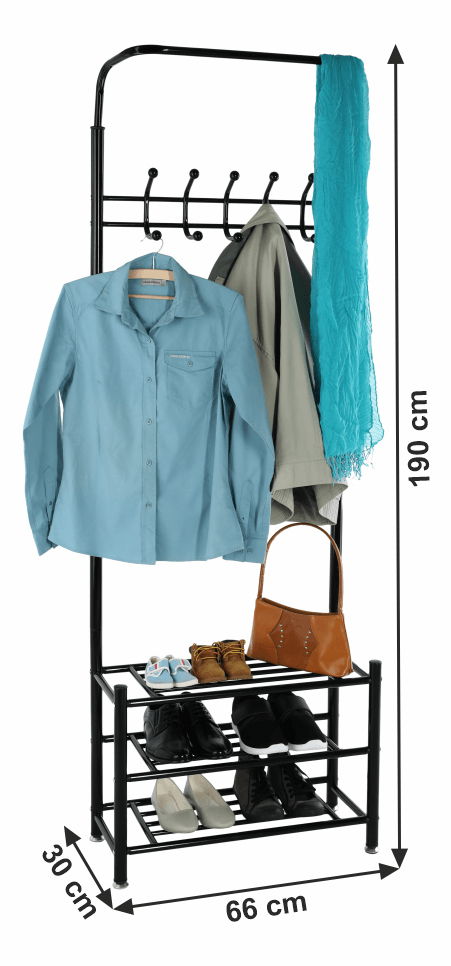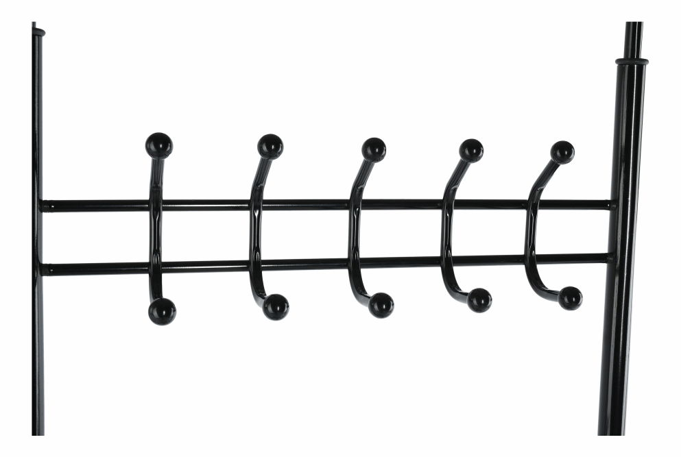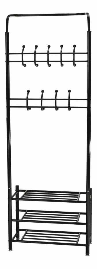Věšák s botníkem Blarion v černém provedení vám umožní elegantně uložit vaše kabáty, bundy a kabelky. S výškou 190 cm a hloubkou 30 cm, tento moderní věšák sestává z devíti háčků, rozdělených do dvou řad. V nejnižší části se nachází praktický botník se třemi policemi, který poskytuje dostatek místa pro vaše boty a jiné věci. Věšák je vyroben z kovu a mramoru, které zajišťují jeho pevnost a odolnost. Tento stylový kousek nábytku bude dokonalým doplňkem do vašeho domova a jistě přitáhne pozornost vašich návštěvníků.