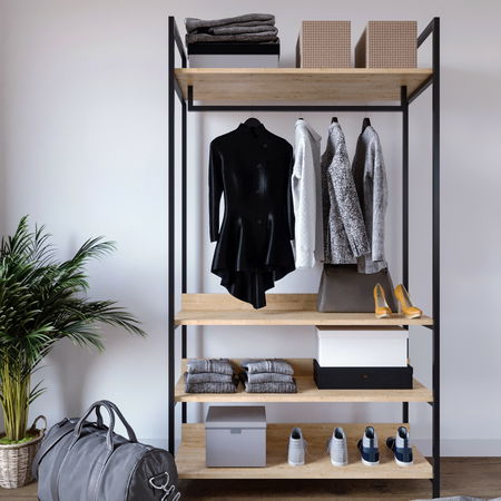 Šatní skříň - Trenda 2 je ideálním řešením pro Vaše oblečení a doplňky. S výškou 180 cm, šířkou 100 cm a hloubkou 40 cm, tato skříň nabízí dostatek prostoru pro uskladnění všech Vašich věcí. Je vyrobena z kvalitního dubového dřeva, což zaručuje jeho pevnost a odolnost. Skříň je vybavena praktickými policemi a závěsnými tyčemi, umožňujícími uspořádání oblečení dle Vašich potřeb. Trenda 2 se výborně hodí do jakéhokoli interiéru, díky svému elegantnímu designu a neutrálnímu odstínu. Uchovejte si vaši šatní kolekci v pořádku s touto kvalitní a funkční šatní skříní Trenda 2!