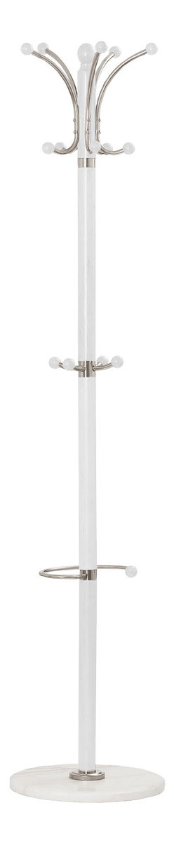 ZobrazitVěšák Weyhill bílá je praktický doplněk do každé domácnosti. S výškou 179 cm a hloubkou 38 cm, poskytuje dostatek místa pro zavěšení kabátů, bund a šál. Vyhotovený z kvalitního dřeva a mramoru, tento věšák zajistí pevné a stabilní uložení vašeho oblečení. Bílá barva dodává věšáku čistý a elegantní vzhled, který se bude hodit k jakémukoli interiéru. Jeho jednoduchý, ale moderní design učiní z něj skvělý přídavek pro každou předsíň nebo ložnici. S tímto věšákem už nebudete muset řešit přeplněné skříně a ráno si jednoduše vezmete své oblíbené kousky přímo z věšáku.