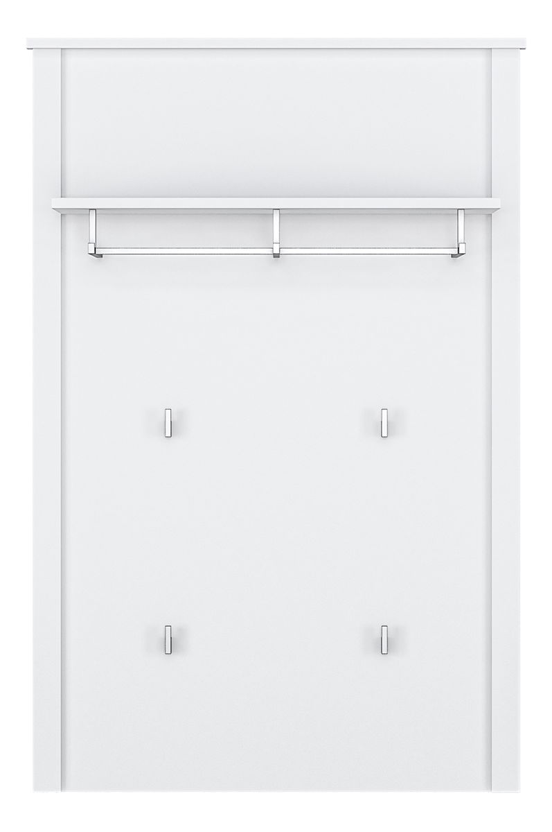 Věšákový panel Otis 80 s výškou 122 cm, šířkou 81 cm a bílou hloubkou 26 cm je dokonalým řešením pro uspořádání vašich kabátů, bund, čepic a šál. S jeho dostatečným úložným prostorem a čtyřmi věšáky, spolu s policí a věšákovou tyčí, vám tento věšákový panel poskytne vše, co potřebujete k uspořádání vašeho šatníku. Získejte praktického pomocníka v podobě ramínkového panelu Otis 80 a už nikdy nebudete mít problém s úklidem a organizací vaší oděvní kolekce.