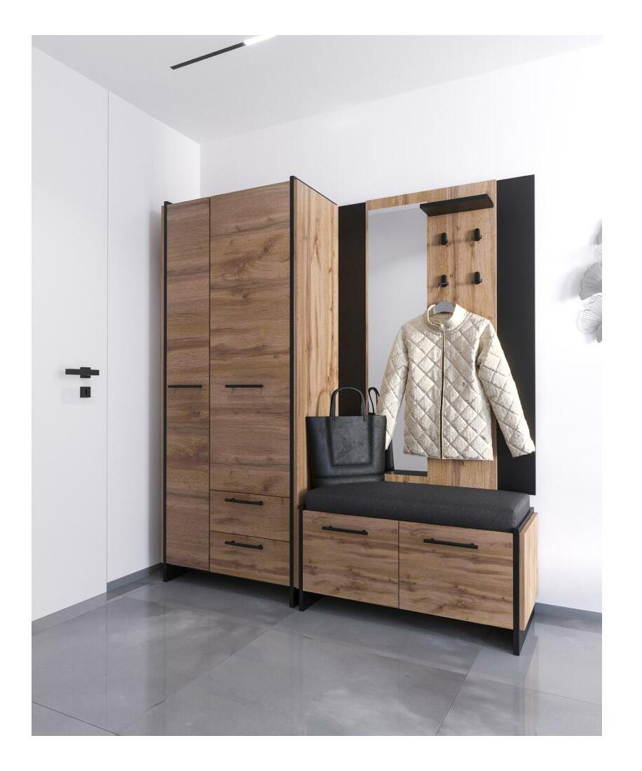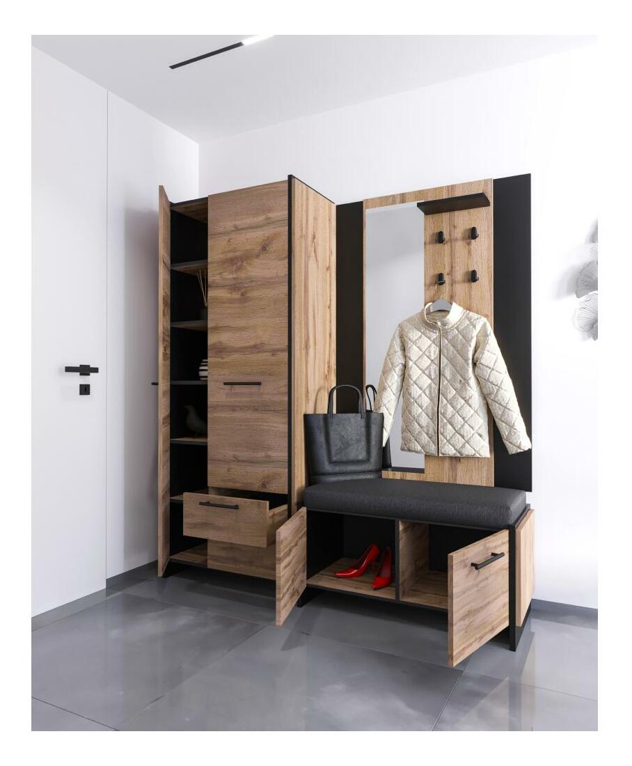 Věšákový panel Actualmente (dub wotan + černá) (se zrcadlem)