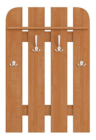 Věšákový panel s poličkou v horní části, pod kterou se nacházejí čtyři věšáčky.