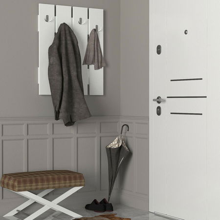 ZobrazitVěšákový panel - Angus (Bílá) je skvělým doplňkem pro vaši domácnost. S výškou 80 cm, šířkou 64 cm a hloubkou 3 cm, tento panel nabízí dostatek místa pro vaše věci. vyroben z kvalitního materiálu, což zaručuje jeho trvanlivost a spolehlivost. oblečení, tašek a dalších doplňků. Díky svému jednoduchému a elegantnímu designu se tento věšákový panel hodí do každé místnosti, od vstupní haly po ložnici. Udržujte své věci v pořádku a vždy připravené k použití s věšákovým panelem Angus.