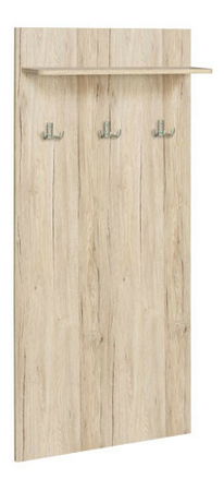 Jednoduchý věšákový panel splní svůj účel zejména v předsíni. Ve vrchní části se nachází odkládací polička a pod ní se nachází šest kovových věšáků.