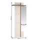 Věšákový panel se zrcadlem na pravé straně vhodný na zařízení předsíně. V horní části se nachází malá polička vyrobena z hnědé barvy dub trufel. Skříňka je vyrobena z odolného materiálu laminované DTD, přední části jsou vyrobeny z MDF bílé barvy - extra vysoký lesk, s elegantními doplňky v hnědé barvě trufel - designovým hnědým pruhem podélným umístěným od shora dolů na konec věšáku. Korpus je bílé barvy, skříňka je odolná vůči poškrábání, vlhkosti, vysoké teplotě.
