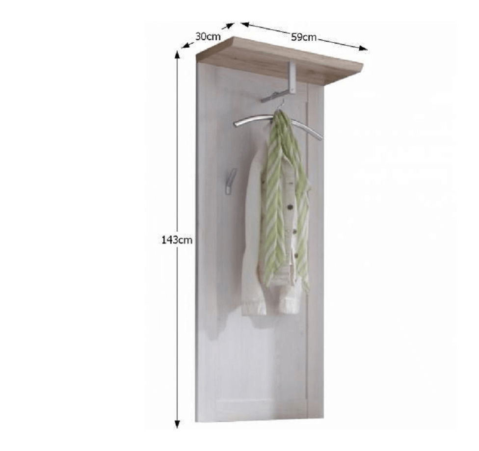 Věšákový panel Radella výšky 143 cm a hloubky 30 cm v bílé a dub San Remo barvě je ideální do každé domácnosti. Tento panel se jednoduše umístí na zeď a dostanete tak dostatek místa pro zavěšení oděvů a jiných věcí. V horní části se nachází praktická polička pro odkládání věcí, pod ní jsou 2 háčky a jeden velký věšákový prvek, který můžete využít k zavěšení kabátů a bundí. Panel je vyroben z bílých materiálů a spodní a vrchní plát jsou z dubu San Remo. Rozměry panelu jsou 95x4x92 cm. Panel je dodáván v demontu, ale jeho montáž je jednoduchá a bezproblémová. Získejte praktický a moderní doplněk do vaší domácnosti s tímto věšákovým panelem.