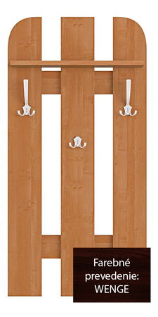 Věšákový panel s poličkou v horní části, pod kterou se nacházejí tři věšáčky.