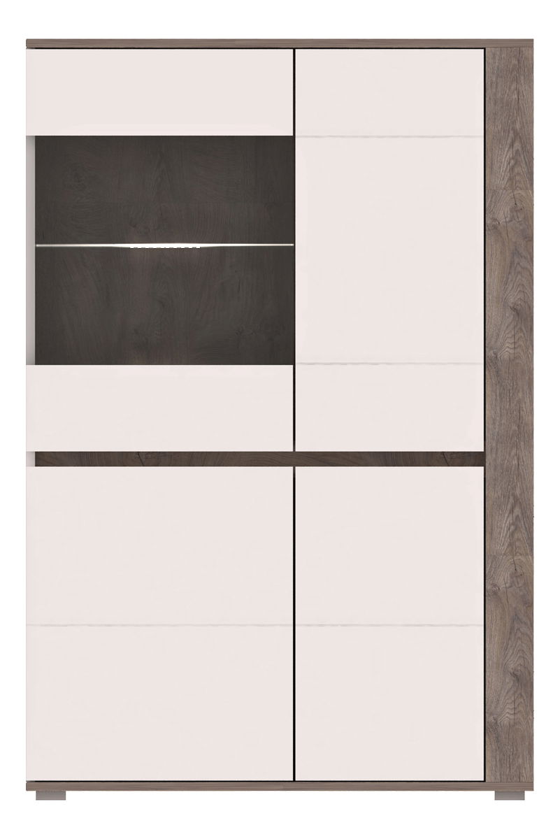 ZobrazitVitrína 144 cm Amos (s osvětlením) je elegantní a praktický nábytek pro Váš obývací prostor či kuchyni. Je vyroben z kvalitního materiálu – dubové dýhy a MDF desky s lesklým bílým povrchem, což zaručuje dlouhou životnost a snadnou údržbu. Díky svým rozměrným parametrům – výšce 144 cm a hloubce 40 cm, poskytuje dostatek místa na uskladnění a zobrazení Vašich oblíbených předmětů. Osvětlení, které je součástí vitríny, zajistí, že vaše exponáty budou perfektně viditelné a zvýrazněné. Vitina Amos je navíc vybavena dvěma posuvnými skleněnými dvířky a 4 policemi, které umožňují flexibilní uspořádání a pořádání prostoru dle Vašich potřeb. Díky svému modernímu designu a praktickým funkcionalitám je Vitrína Amos ideální volbou pro ty, kdo hledají spojení vkusu a praktičnosti v jednom produktu.