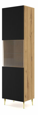 Vitrína 1DS Rowanna (dub artisan + černá + zlatá)