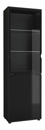 Pokud si chcete zařídit obývací pokoj luxusně a stylově, tato vitrína bude to pravé pro Vás. Moderní design doplňuje nádherné barevné provedení černé v kombinaci s extra vysokým černým leskem a bezúchytové otevírání dvířek. Poličky vitríny jsou podsvícené s LED podsvícením.