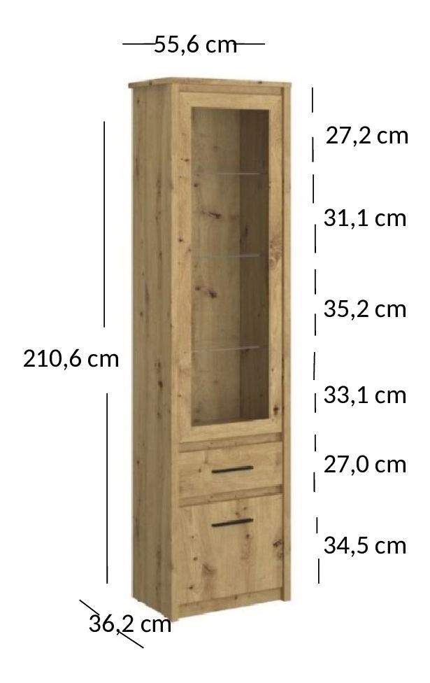 Vitrína Andra 1D1W1S (dub artisan)