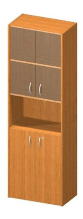 Kancelářská vitrína Asista AS 004 třešeň je ideální pro každou kancelář nebo zasedací místnost. Vitrína má skleněná dvířka v horní části a uzamykatelná dvířka s poličkou v dolní části. Ve středu vitríny se nachází otevřený prostor pro ukládání věcí. Vitrína je vyrobena z DTD laminátu s ABS hranami, které zaručují její pevnost a trvanlivost. Sestavu si můžete vybrat z barevných provedení jako jsou třešeň, buk, dub Sonoma nebo Bardolino tmavé. Rozměry vitríny jsou 57x34x175 cm a tloušťka materiálu je 16 mm. Zámek se nachází na obou dveřích vitríny a je dodávána v demontu. Výborně se hodí pro zařízení kanceláří, pracoven, školních učeben, nebo zasedacích místností.