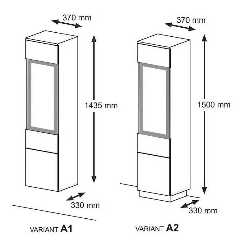 Prezentovaná vitrína z kolekce AURORA byla vyrobena v moderním stylu a barevném schématu. Kombinace dřevěného dekoru s matnou černou a sklem bude ladit s různými interiérovými řešeními, jako je obývací pokoj a jídelna. Jednoduchý korpus, vybavený bezúchytkovými frontami, činí tento kus nábytku atraktivním a poutavým.