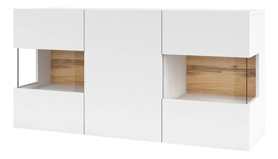 Vitrína Avernic v moderním provedení obsahuje pět poliček za třemi dvířky z nichž dvě obsahují skleněnou část. Tato vitrína se dá šikovně zavěsit na zeď, takže se hodí i do místnosti s méně prostorem. Do vitríny lze dokoupit osvětlení.