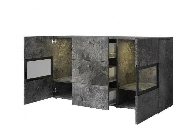 ZobrazitVitrína Barax v barvě břidlice je perfektní ukázkou moderního industriálního stylu. Jste-li fanoušek tohoto stylu, tak si tuto vitrínu jednoduše zamilujete.