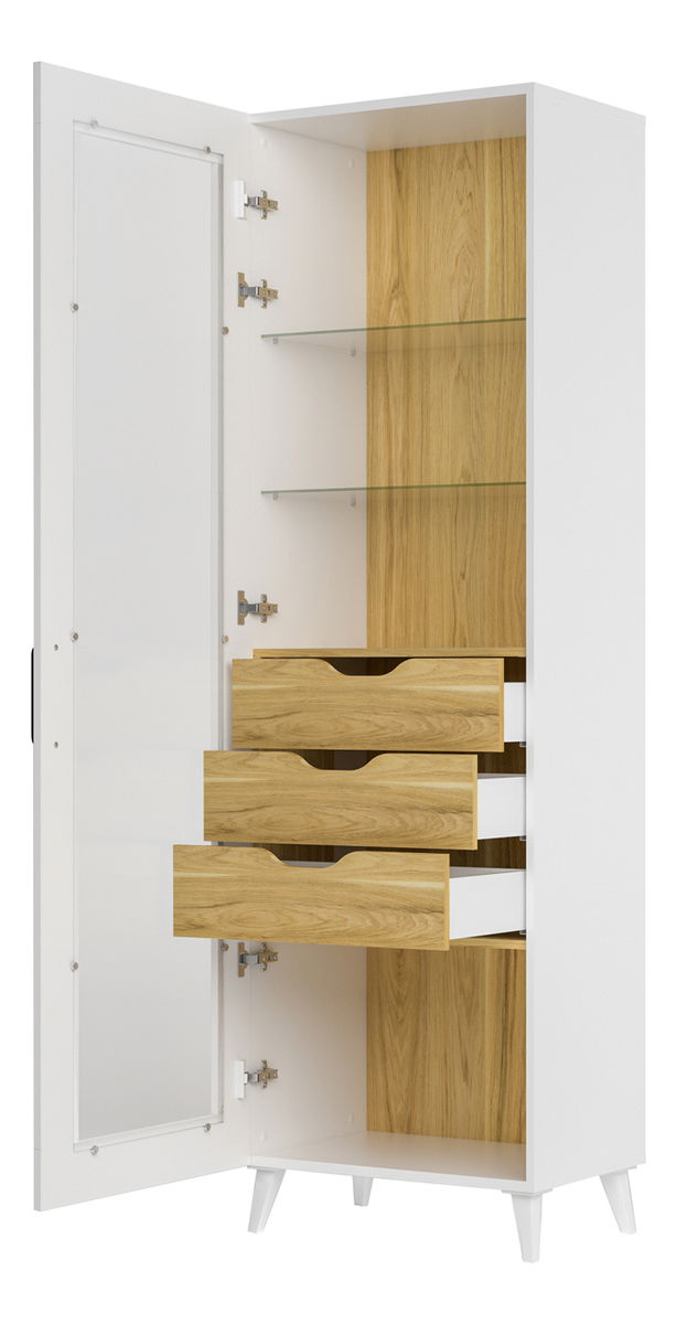 ZobrazitVitrína Barilus 10 je skvělým doplňkem pro váš domov. S rozměry výška 200 cm, šířka 60 cm a hloubka 42 cm, tato vitrína je dostatečně velká pro uložení a vystavení vašich cenných věcí. Je vyrobena z kvalitního materiálu – kombinace dřeva v odstínu amerického ořechu a bílé barvy, což dodává výrobku elegantní a stylový vzhled. Vnitřní prostor je dobře uspořádaný s více plochami a složkami pro pořádání a přehledné ukládání věcí. Díky skleněným dveřím budete mít možnost vystavit své oblíbené předměty a zdobit svůj domov. Vitrína Barilus 10 je funkční, esteticky příjemná a jistě zvýší hodnotu vašeho interiéru.