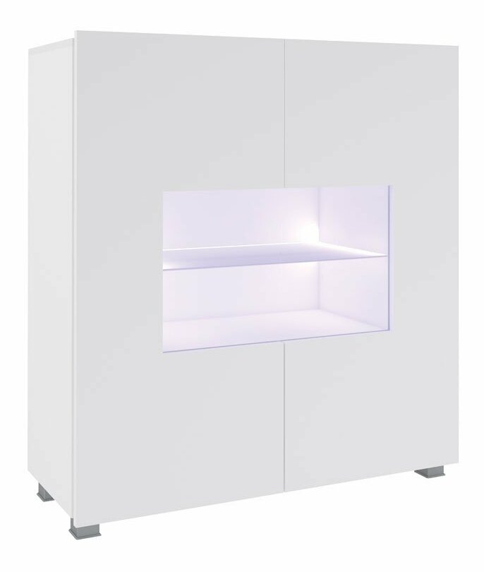 Vitrína Brenali BR01 (bílá + bílý lesk) (osvětlení led modré)