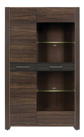 Vitrína obsahuje skříňku s 3 plnými policemi a Vitrínové část, která obsahuje 2 skleněné poličky s energeticky úsporným LED osvětlením a 2 plné police.