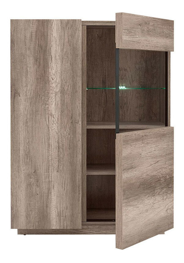 ZobrazitPokud toužíte po krásné vitríně, která spojuje moderní minimalistický design s přírodními prvky, tato vitrína je správnou volbou pro vás. Vitrína má v pravé části prosklenou část, ve které vyniknou dekorace, které do ní uložíte. Ke skleněné poličce ve vitríně si můžete dokoupit osvětlení, které zvýrazní doplňky v ní a navodí atmosféru v obývacím ozbe. V levé části vitríny se nacházejí dvířka a poličky uvnitř.