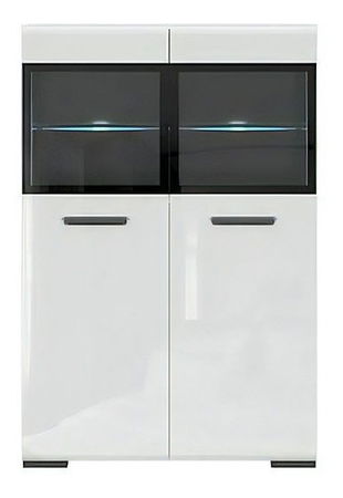Dvoudveřová vitrína disponuje výstavním místem ve vrchní části za skleněnými dvířky a ve spodní části se nacházejí předělené police, které poskytují velký úložný prostor. Barevná kombinace nábytku v kontrastu s průhlednou vrchní působí Mörder, čistě, decentně, a proto tato vitrína nesmí chybět v každém moderním interéru. Materiál: Nábytková deska. Nábytek disponuje systémem tichého zavírání dvířek, což zvyšuje komfort při používání.