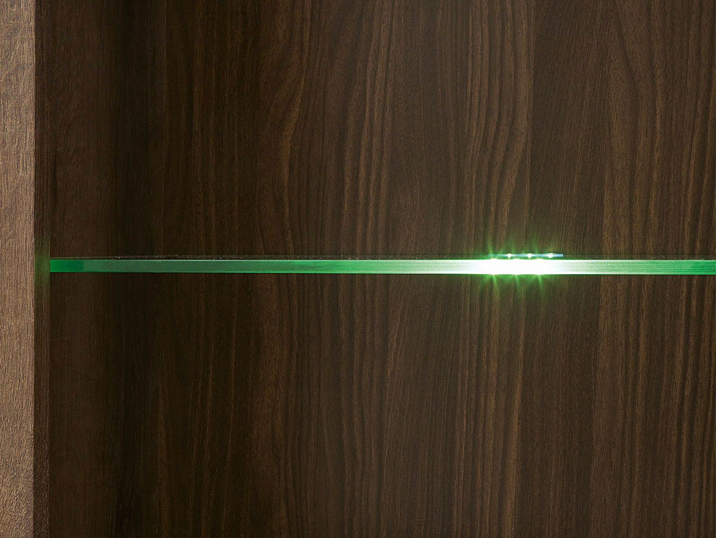 Vitrína Balin s LED podsvietením poličky upozorňuje na vystavené dekorace, fotky a další drobnosti. Vitrína má dvě dvířka, jedny jsou z části presklenné. Za oběma dveřmi se nacházejí praktické poličky. Elegantní vitrína je vyrobena z dřevěných laminovaných desek. Dvierka mají systém tichého dovierania.