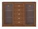 Nádherná vitrína, která spojuje archaický styl s moderními prvky. Vitrína má prosklená dvířka a na levé a pravé straně se nacházejí police. Ve vitríně se budou pěkně vyjímat vaše dekorace a doplňky. Touto vitrínou dodáte eleganci vaším obývacím pokojům, jídelnám nebo pracovnám.