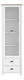 Úzká vitrína v provensálském stylu s kovovými úchyty. Vitrína obsahuje dvě zásuvky na válečkových kolejničkách a čtyři police s maximální nosností 4 kg.