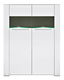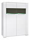 Nízká vitrína Dinaro v bílém provedení. Vitrína obsahuje 1 plnou a 1 skleněnou polici. Dvířka vitríny jsou z tvrzeného skla. Součástí vitríny je energeticky úsporné LED osvětlení skleněných polic.