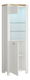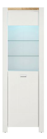 Velmi pěkná úzká vitrína, která nezabere mnoho prostoru, ale díky její výšce do ní uložíte spoustu potřebného vybavení do obývacího pokoje, a ještě Vám poskytne i místo na věci, které chcete předvést návštěvě nebo je jen chcete mít pořád na očích. Obsahuje jednu praktickou dřevěnou polici a dvě skleněné police.