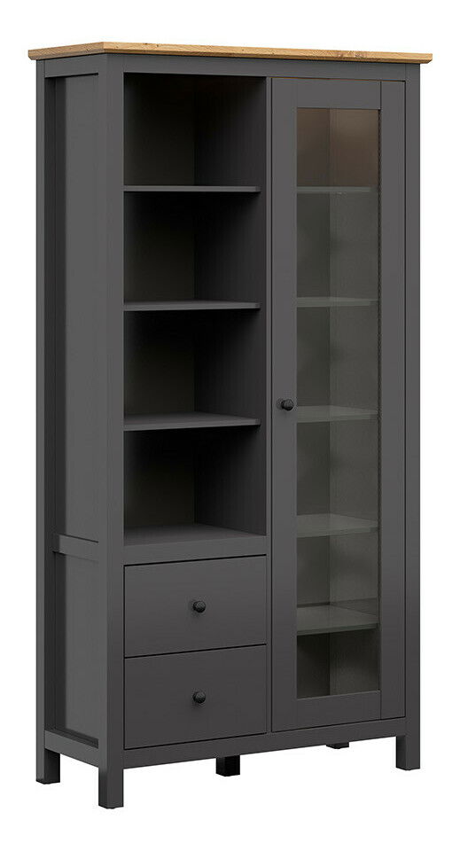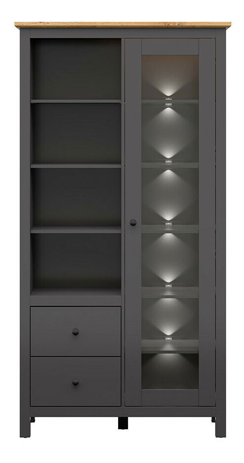 Vitrína BRW Hesen REG1W2S/20/11 (s LED osvětlením) (grafit + dub artisan)