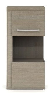 Praktická vitrína REG1WL/12 - levé provedení. Vitrína obsahuje 2 plné police. Použité panty vyššího standardu Salice zaručí plynulé a tiché zavírání dvířek. Povrch vitríny je pokryt vysoce kvalitní dubovou dýhou, což zajistí nadčasový, moderní design nábytku. Součástí vitríny je energetické úsporné LED osvětlení.