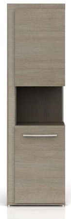 Praktická vitrína REG1WL/20 - levé provedení. Vitrína obsahuje 4 plné police. Použité panty vyššího standardu Salice zaručí plynulé a tiché zavírání dvířek. Povrch vitríny je pokryt vysoce kvalitní dubovou dýhou, což zajistí nadčasový, moderní design nábytku. Součástí vitríny je energetické úsporné LED osvětlení.