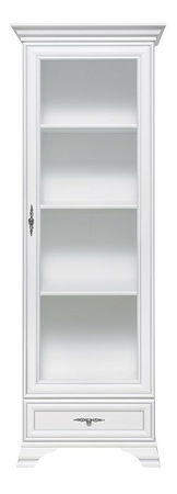 Praktická vitrína z kolekce identit je v nadčasovém stylu. Obsahuje prosklené dveře a nabízí úložný prostor v podobě tří polic uvnitř vitríny. Zásuvka, která se nachází v dolní části vitríny poskytuje prostor k ukládání drobností.