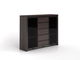 Krásná vitrína minimalistického designu s jemnými liniemi. Bude krásným doplňkem vašich obývacích pokojů, jídelen nebo pracoven. V levé a pravé části se nacházejí prosklená dvířka, kam si můžete umístit porcelán, dekorativní předměty a jiné doplňky. Uprostřed je pět zásuvek. Zásuvky mají svrchu seříznuté hrany pomocí kterých se otevírají.