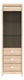 Vitrína s prosklenou horní částí a třemi zásuvkami v dolní části. Levostranné otevírání dvířek vitríny.