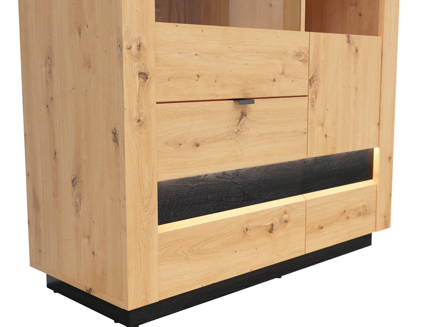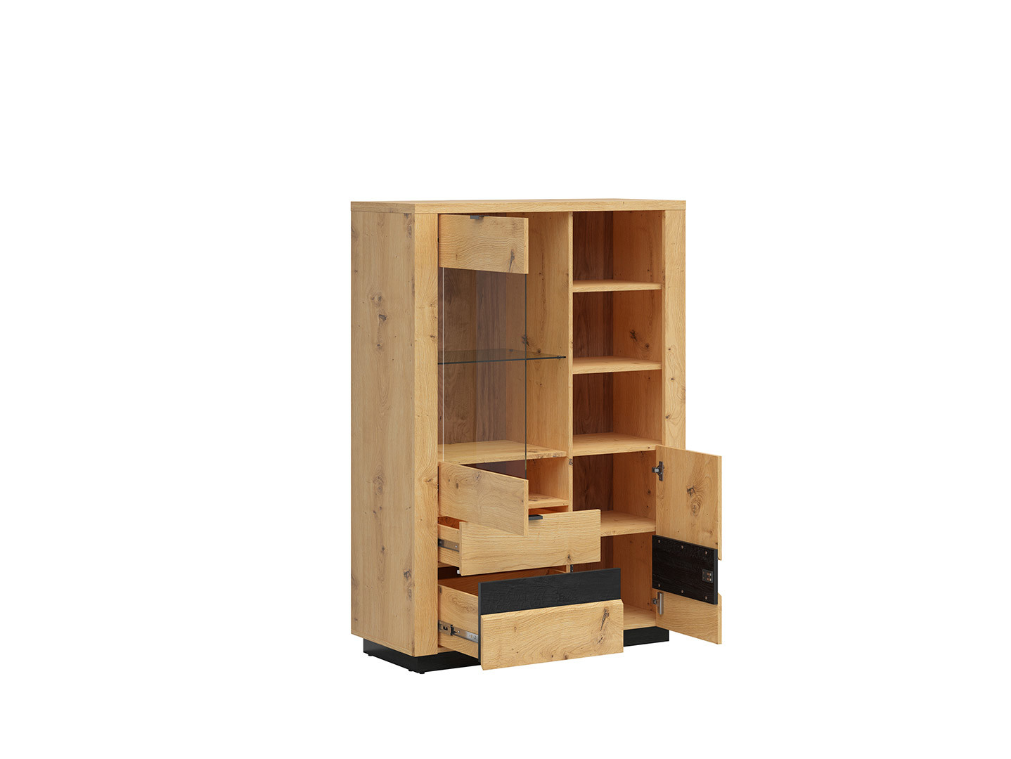 Vitrína BRW Ostia REG1D1W2S/15/10 (dub artisan + dub černý)