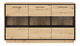 Vitrína Pont ideálně spojuje funkčnost a styl dvou kusů nábytku. Poskytne vám nejen možnost vystavit vaše oblíbené předměty, ale také spoustu úložného prostoru. Vitrína Pont přidá vašemu interiéru moderní akcent. Na poličkách, které jsou viditelné skrz skleněné dveře, můžete efektně vystavit jídelní servis, sklenice, rámy s fotkami nebo rodinné suvenýry. Váš obývací prostor bude díky tomu jedinečný a osobitý. Dlouhá a pevná vrch je ideálním místem pro lampu, voňavé svíčky nebo jiné dekorativní předměty, které do vašeho interiéru vnášejí barevné akcenty. Nábytek má také velké úložné poličky za pevnými dveřmi. Můžete zde uložit předměty, které nechcete mít na očích. Díky tomu uděláte v místnosti pořádek a zbavíte se nepořádku. Vitrína Pont v odstínu dub artisan je zdobena černými detaily, které jí dodávají hloubku. Kontrastní kombinace jsou doplněny kovovými úchyty, které činí používání komody jednodušším. Jsou odolné a ergonomické. Tento nábytkový kus je vybaven závěsy s tichým zavíráním, což vám umožní bezhlučně využívat tento multifunkční kus nábytku.