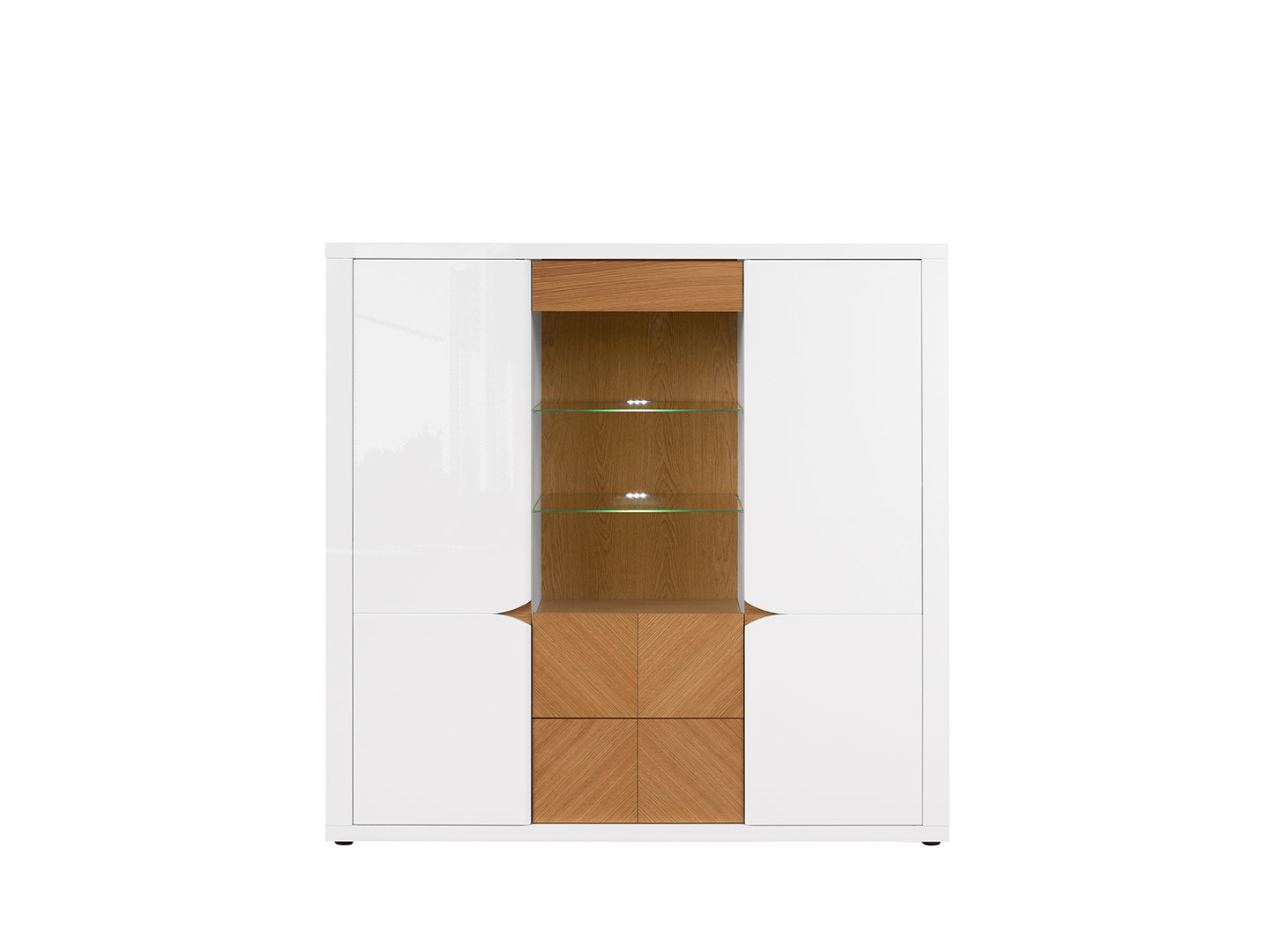 Vitrína BRW Rovika REG2D1W1S (lesk bílý + dub přírodní) (s LED osvětlením)