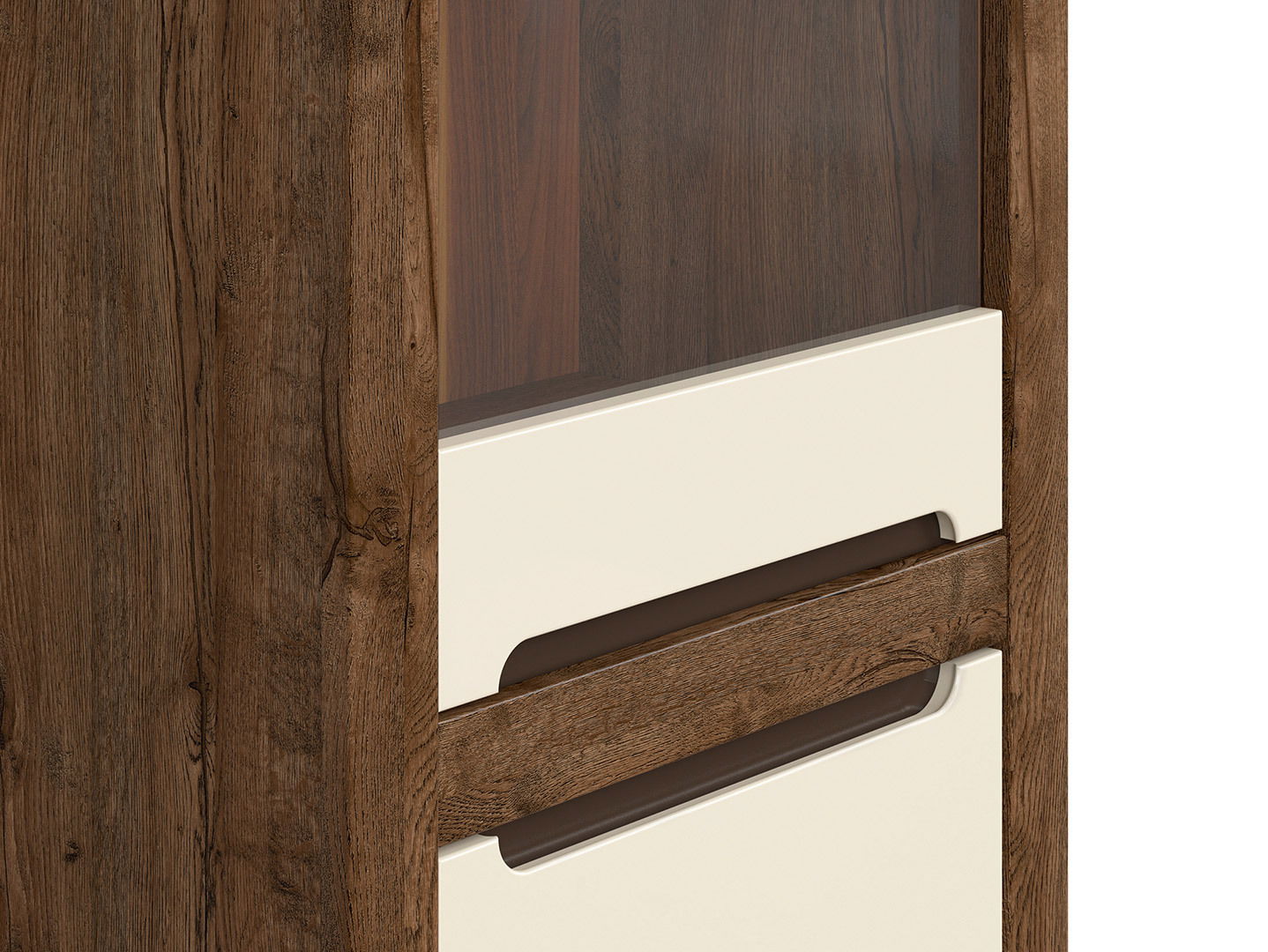 Obývací pokoj je místem, kde není nedostatek dekorativního příslušenství. Webová stránka Rusu bude prokázána. Za skleněnou přední částí položte dekorace, porcelán nebo rodinné fotografie. V dolní části nábytku najdete praktickou skříňku, v níž budete skrývat malé předměty.
