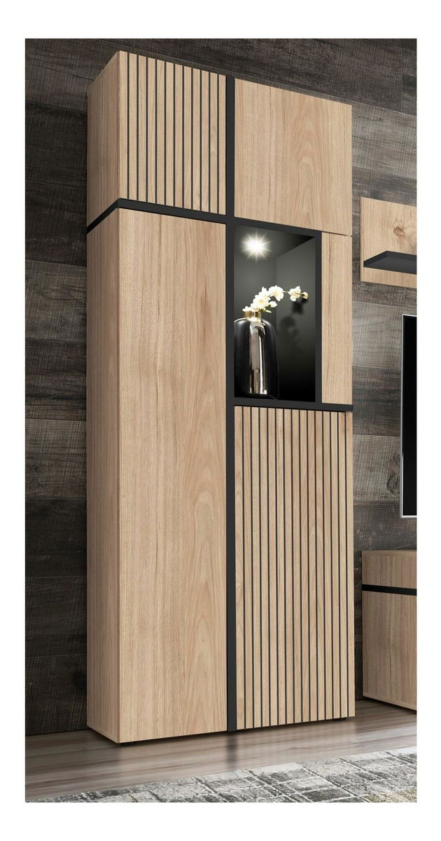 Vitrína Carlyn WSW (hikora jackson + černá) (s LED osvětlením)